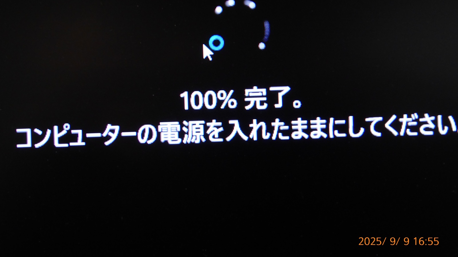 その後画面が真っ黒に。