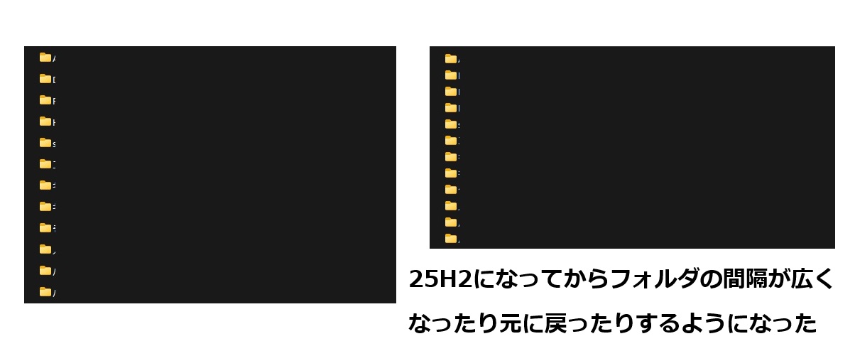 フォルダの間隔が広くなったり元に戻ったりするようになった。