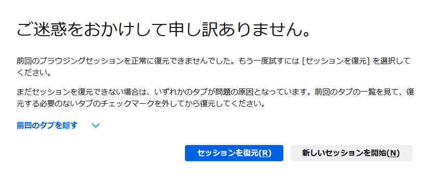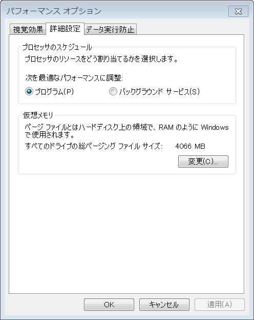 一旦閉じて、システムのプロパティから仮想メモリを設定し直したら正常にブラウザが立ち上がった。