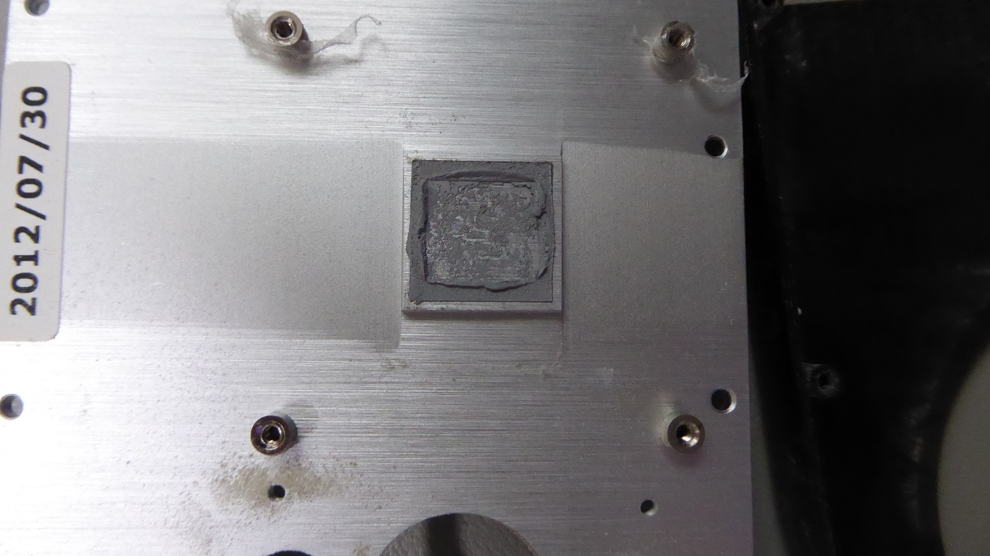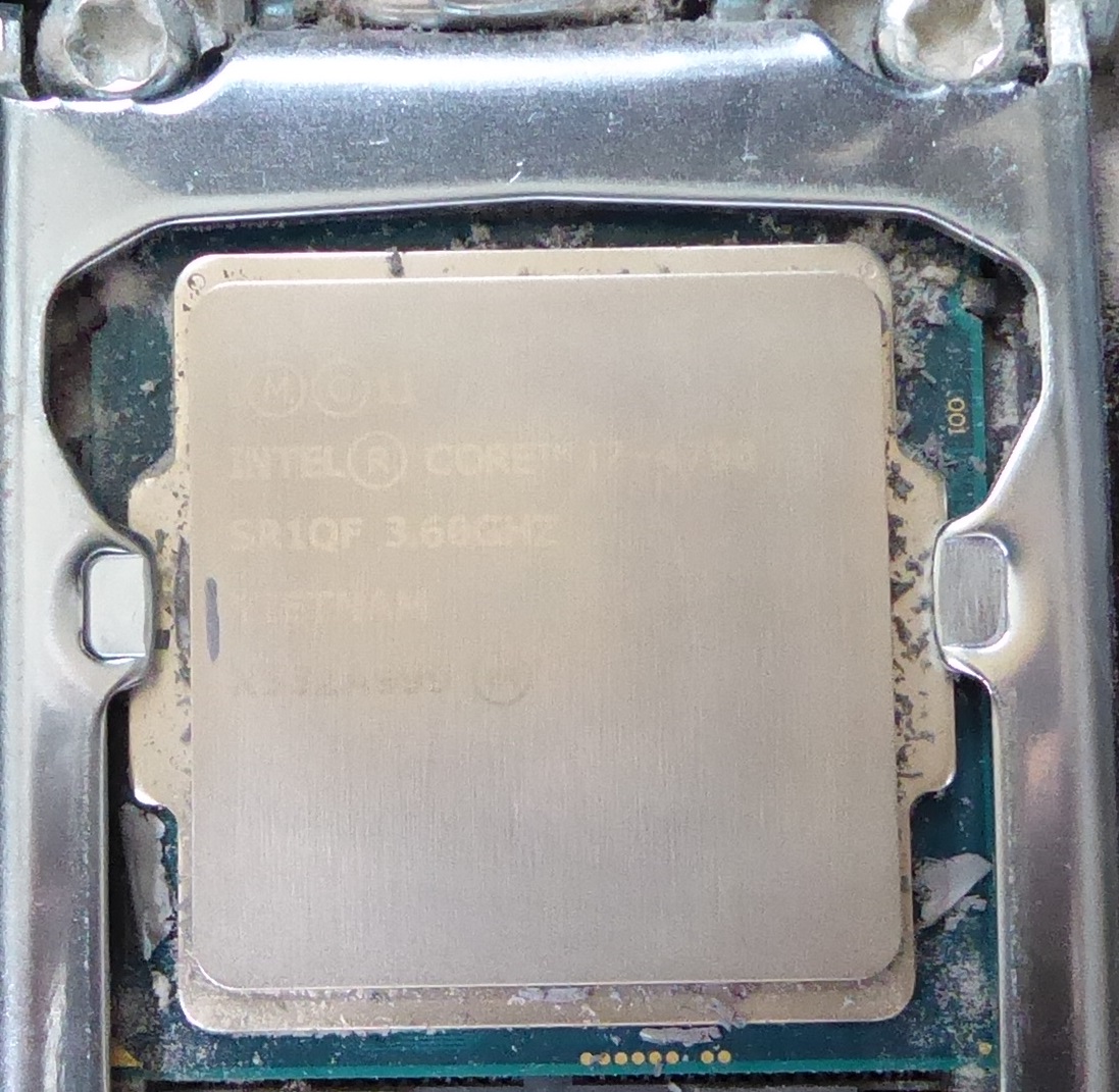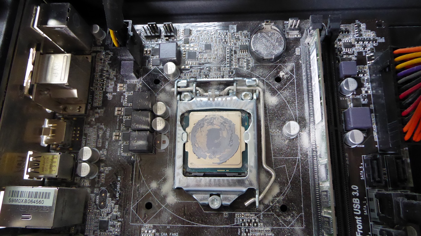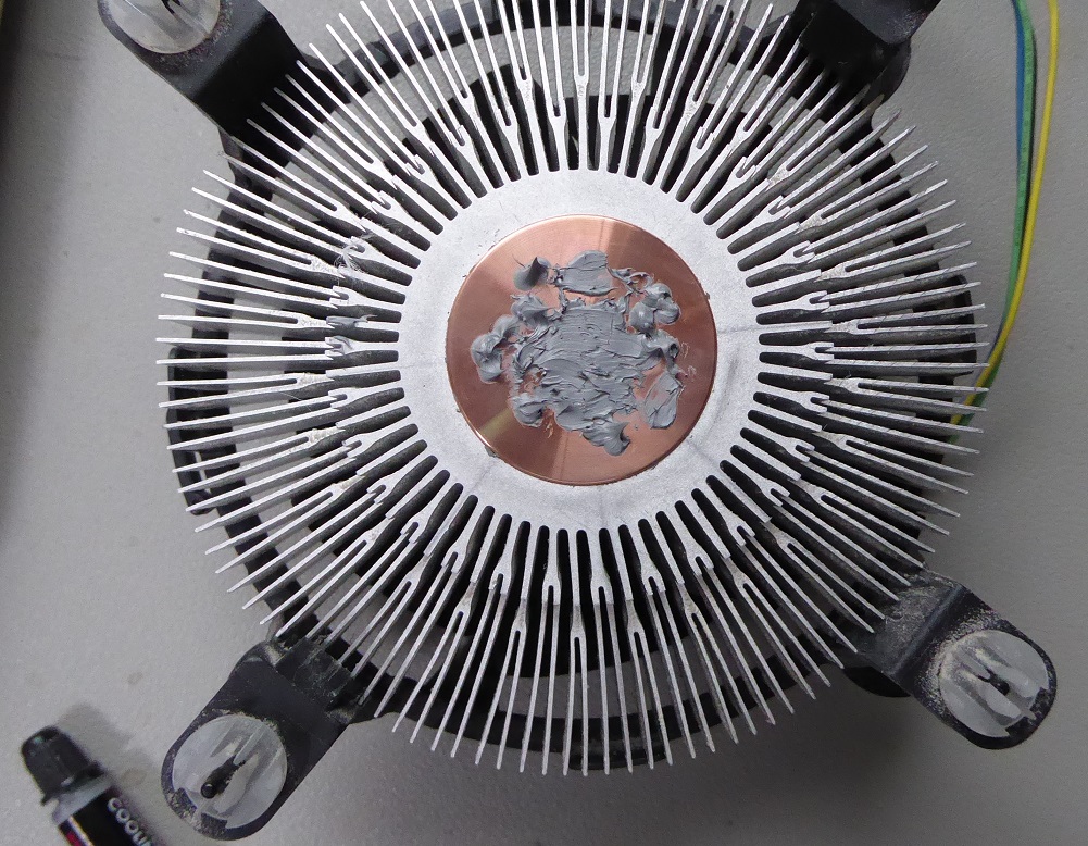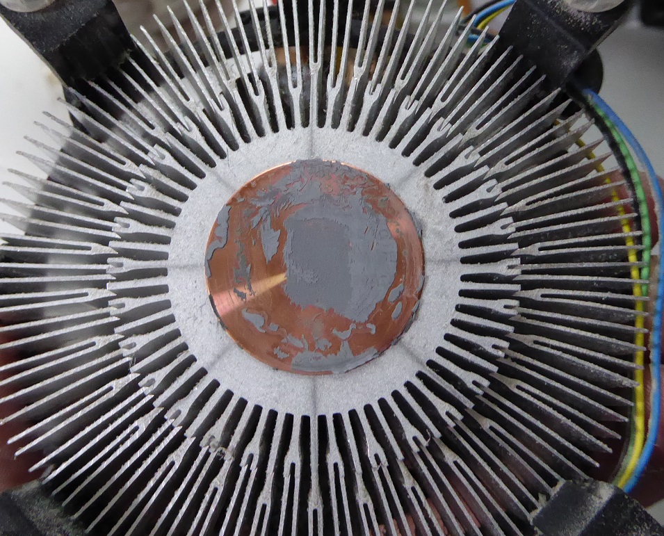CPUグリスがカピカピになっていたので強力拭き取りウエットタイプクリーナーで拭き取り、新しくグリスを塗って取り付けた。