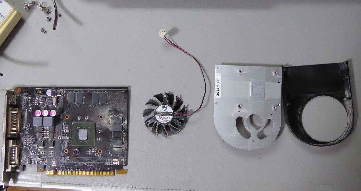 ので分解して掃除して保管していた元々付いていたグラボGTX750Tiを出してきて12Vで回してみたら煩くなかったのでとりあえず又取り付けた。
