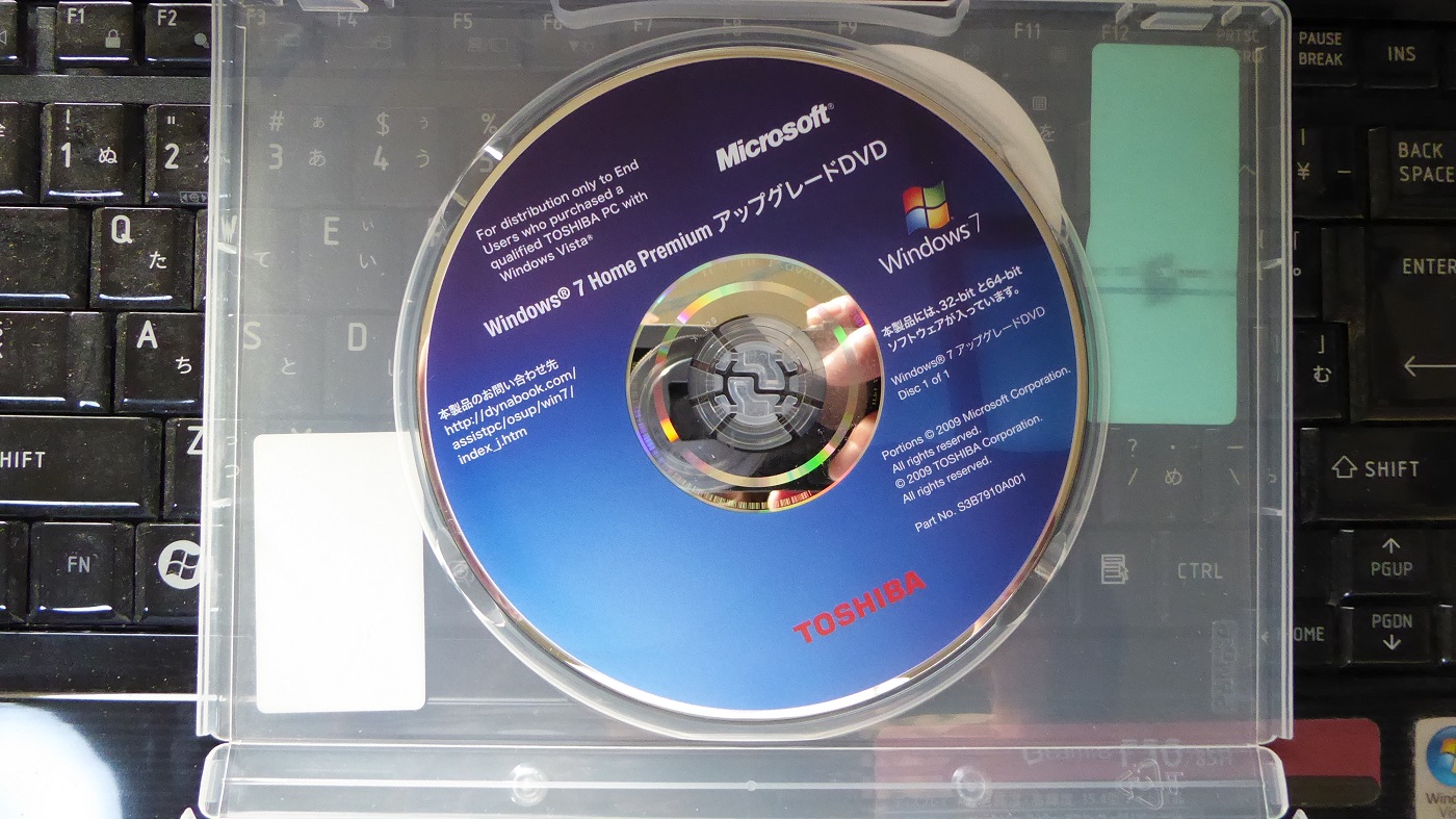 今日は2022年11月なのだが2009年に購入した東芝ノートパソコンVista用のWindows7アップグレードキットDVD。