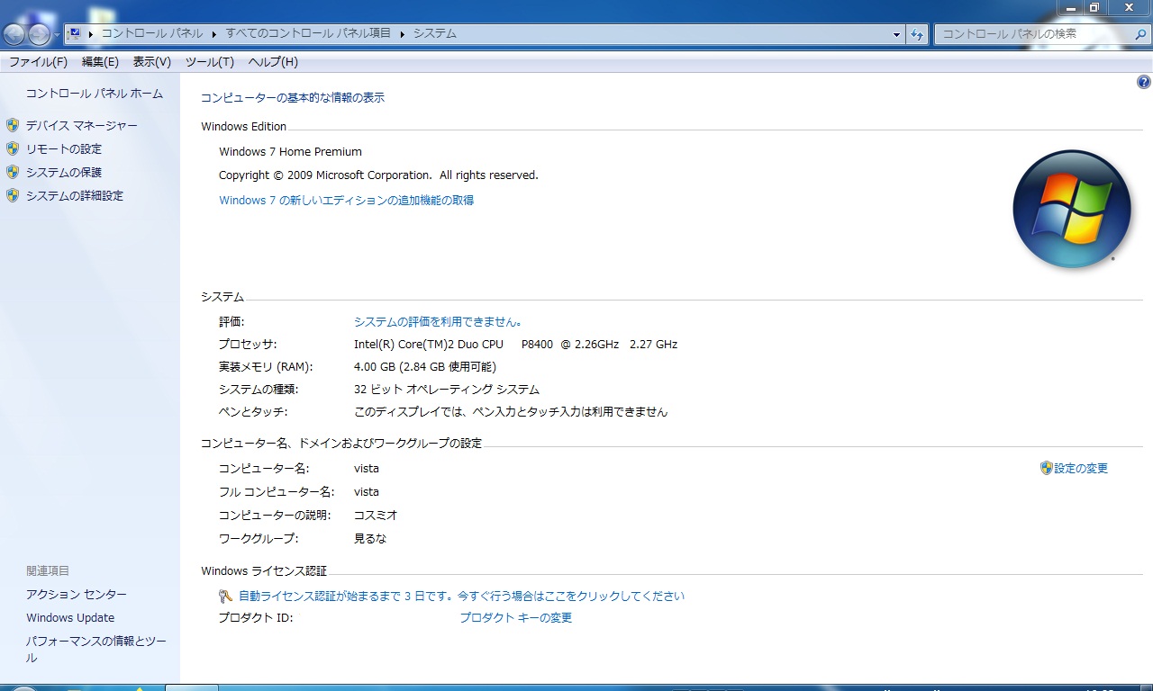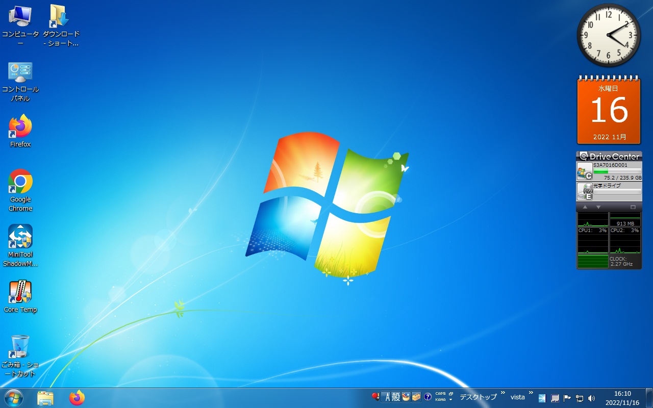 Vistaではだめだったが今度は正常にインストールでき、動作した。これでSSDに入れ替えできるかな。