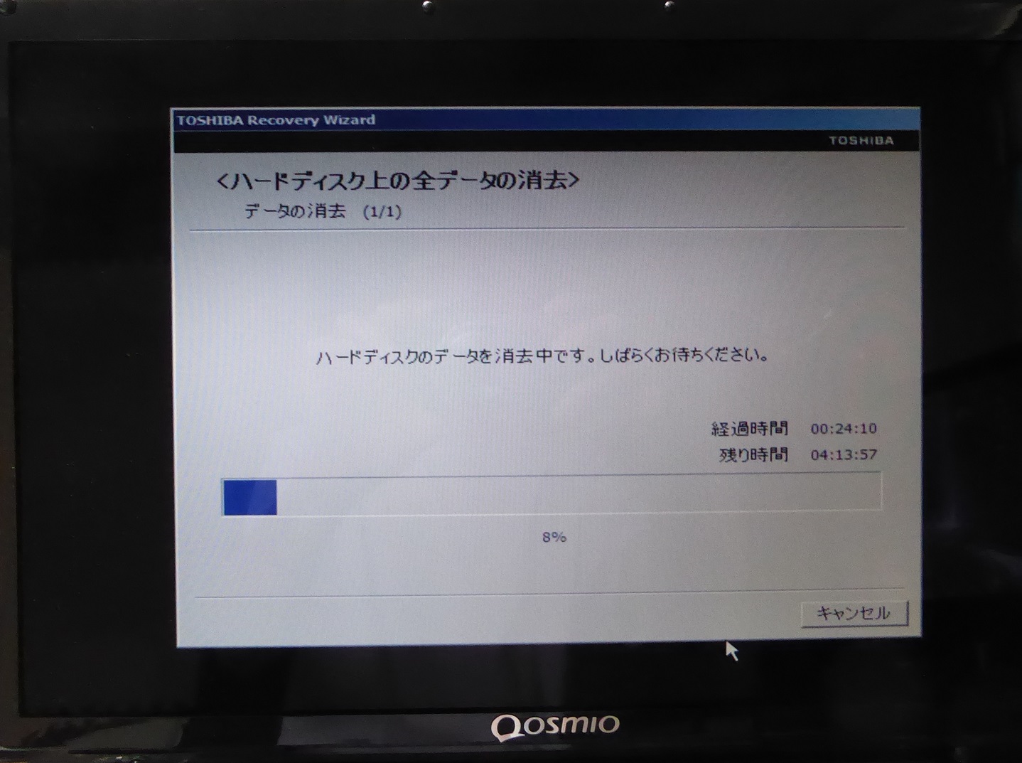 いろいろやっていたら東芝リカバリーソフトというのがあったので試してみようと思い実行したら4時間ほどかかった。