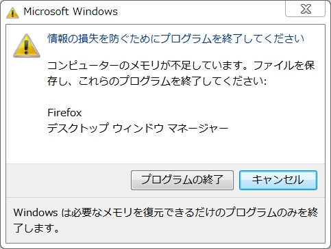 メモリを購入しようと思いブラウザを立ち上げたらメモリ不足の表示。