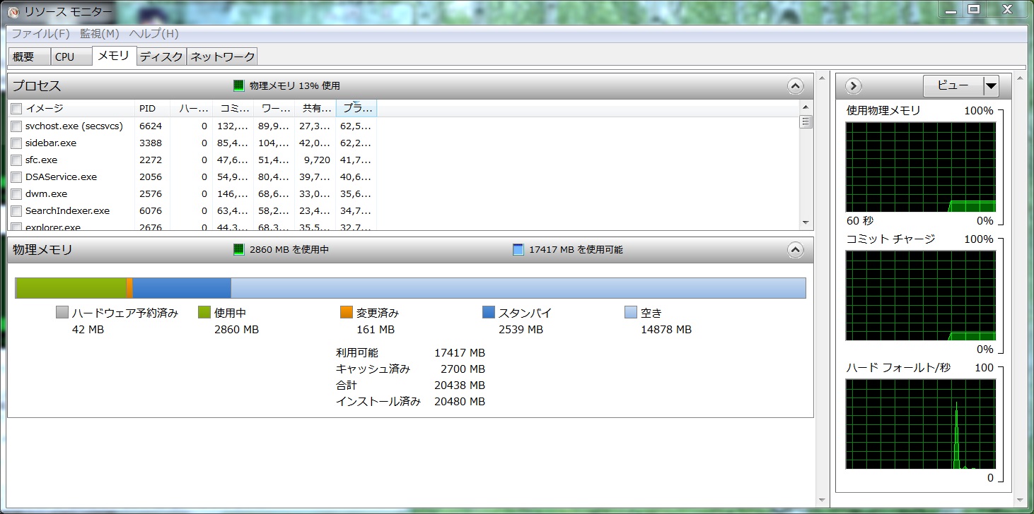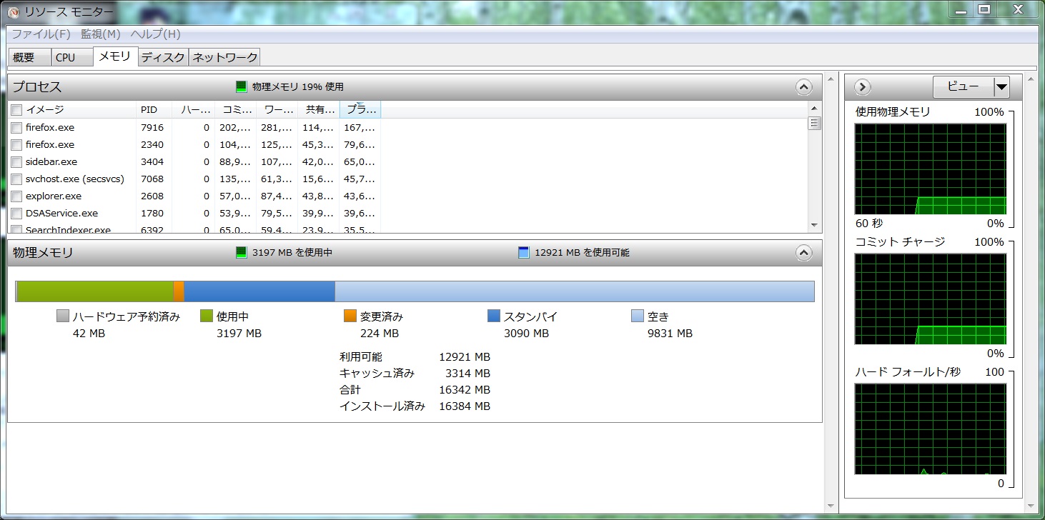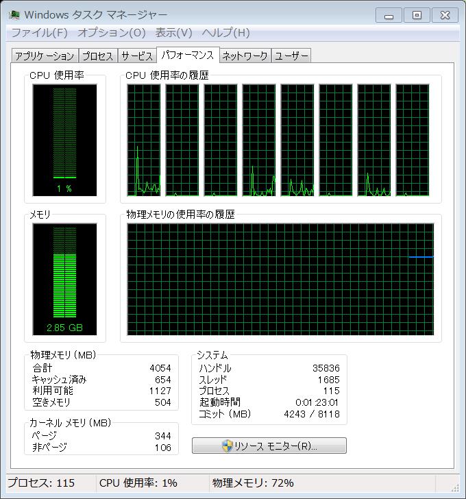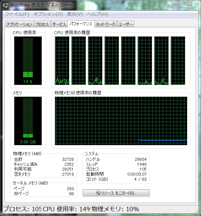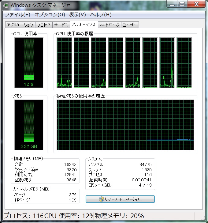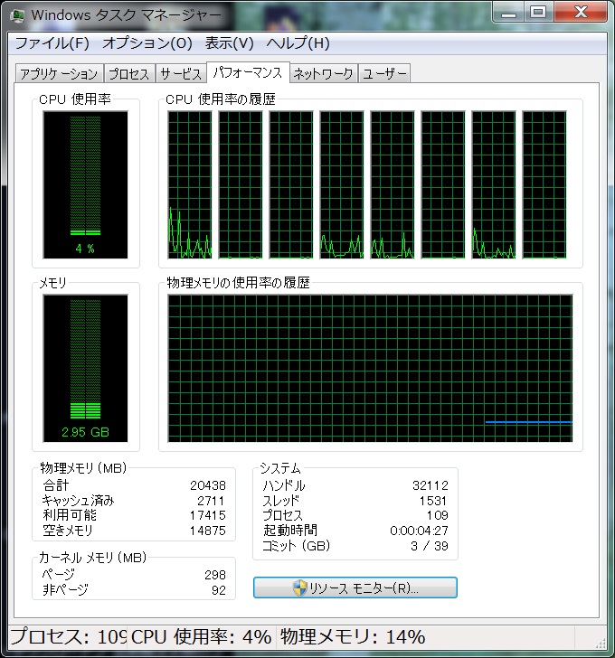 リソースモニタ。