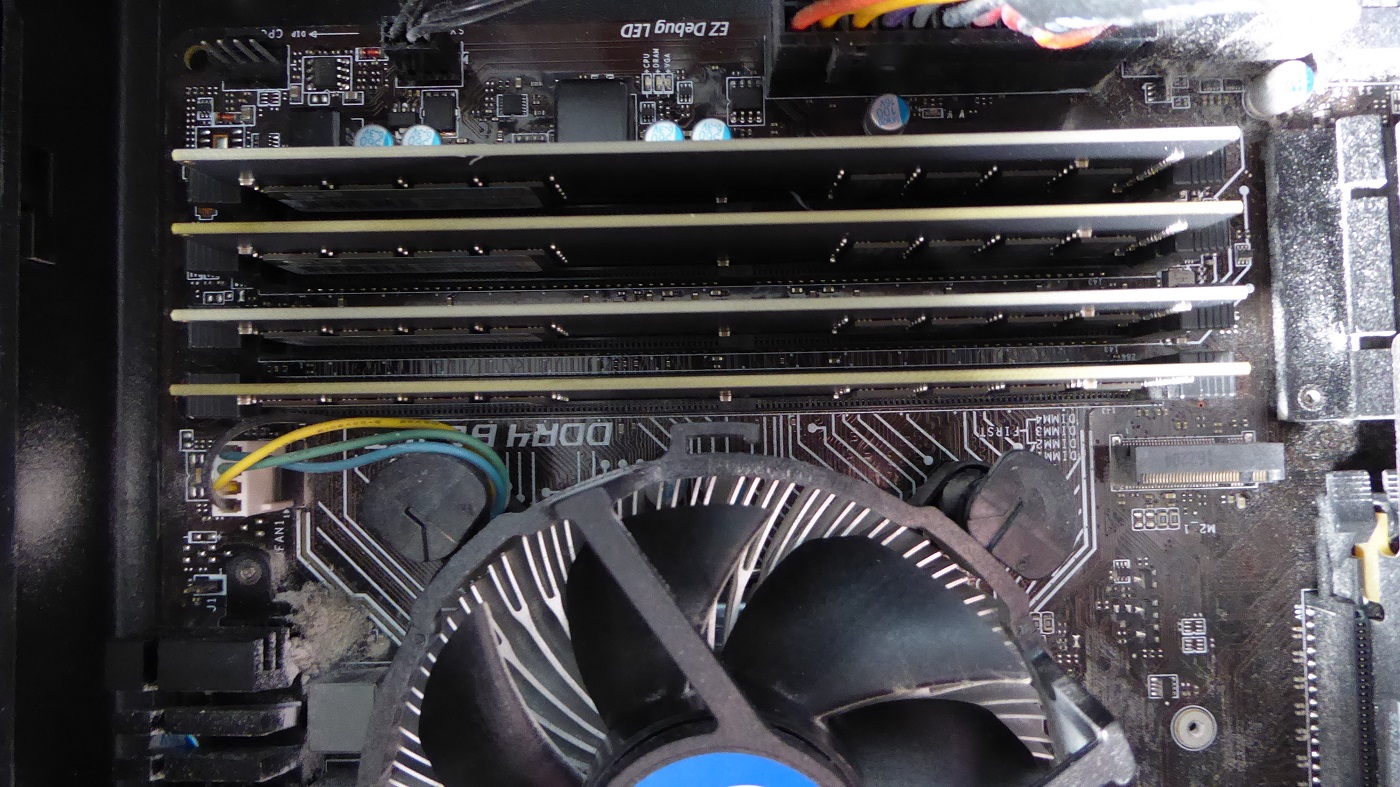 以前のブログを見ていてメモリが1番2番に同じのが刺さっていて(4G2枚)3番4番にあとから購入したシリコンパワーのメモリ(4G2枚)が刺さっている?と思い確認したらやっぱりそうだった。