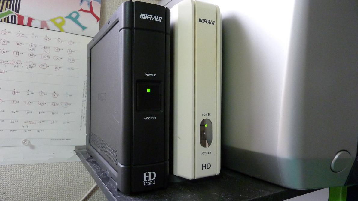 実は昨日、BUFFALOの外付けハードディスクHD-HS1.0TSU2を買ってきてeSATAケーブルで接続したらパソコンのDVDドライブのアクセスランプが点滅し続けてガガッという音がし続けるという不具合が起きたのです。